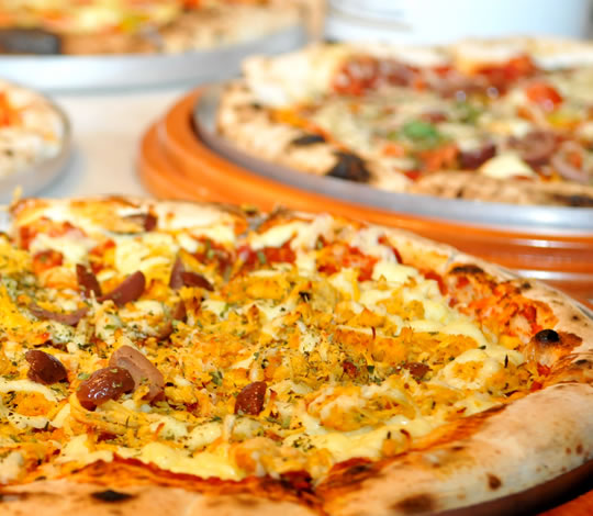 - Servimos mais de 30 sabores de pizzas salgadas e 8 doces.